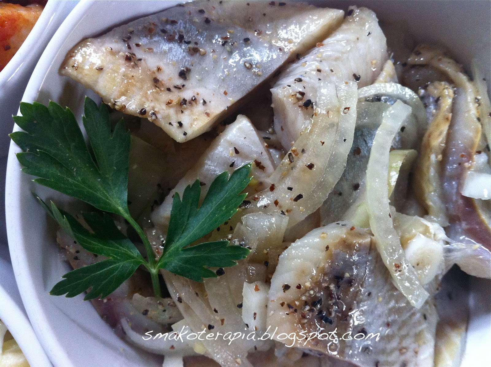 Śledzie mocz kilka godzin w wodzie (zmieniam ją przynajmniej raz).