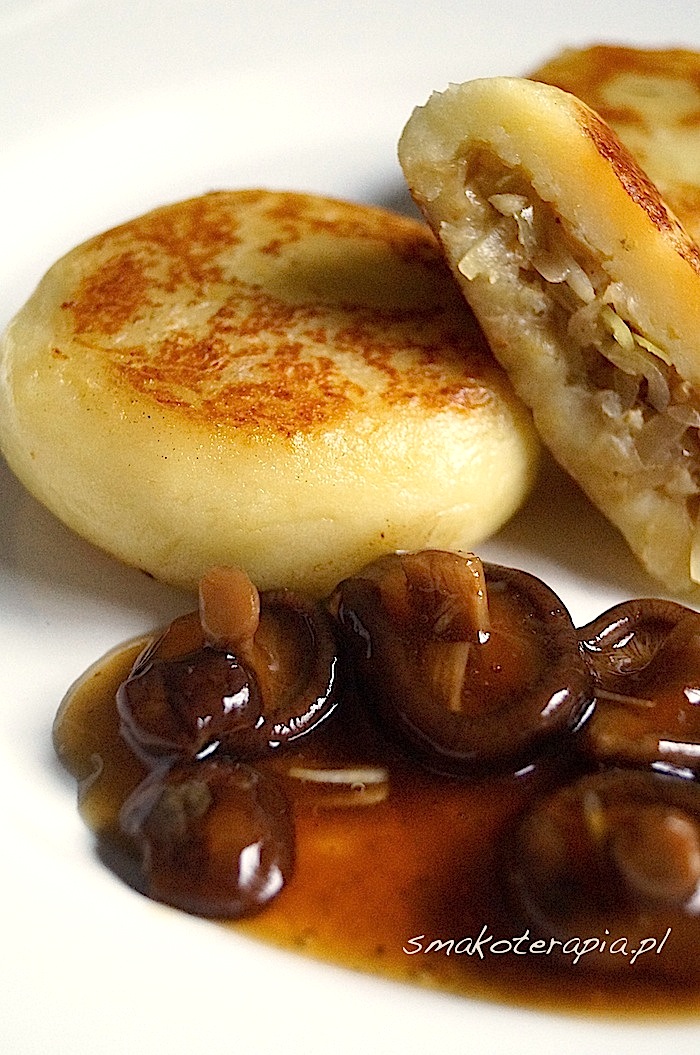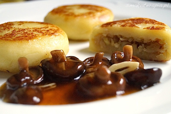 Kluseczki ziemniaczane, nadziewane kiszoną kapustą w towarzystwie grzybowego sosu z czosnkiem smakują wybornie. Małym dzieciom nie podajemy grzybów. Kluseczki znakomicie sprawdzą się jako danie „do łapki”.