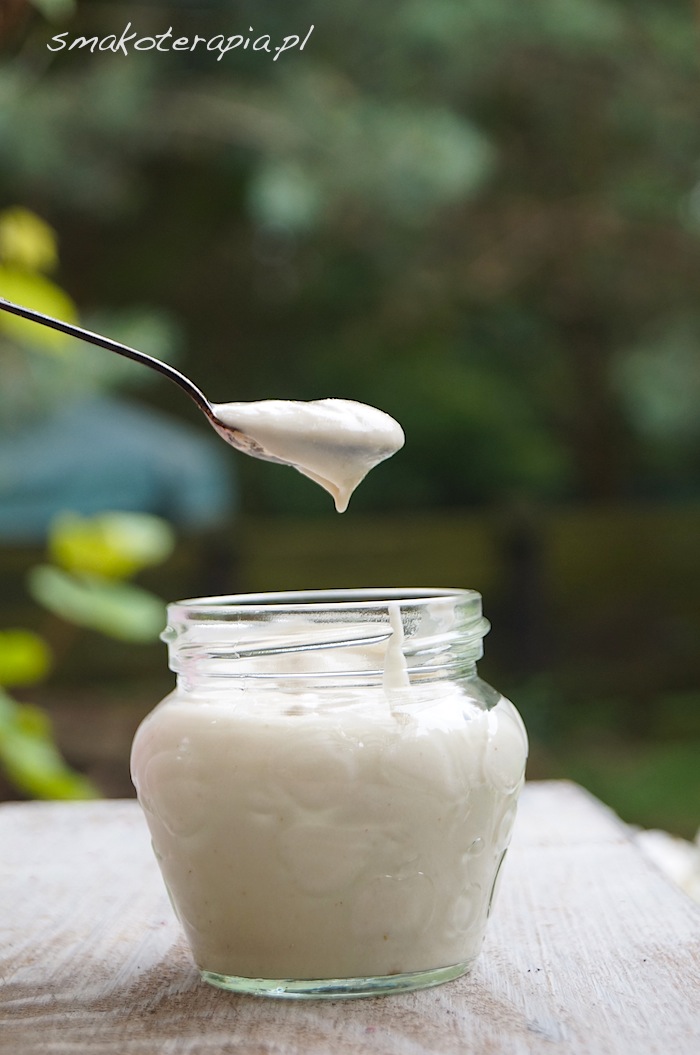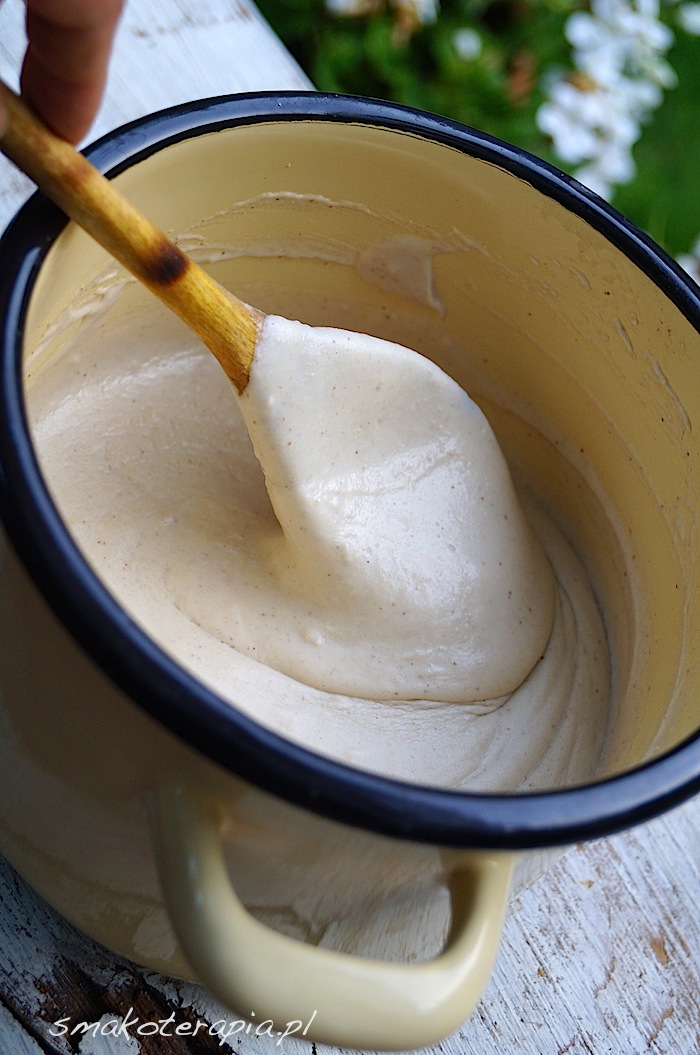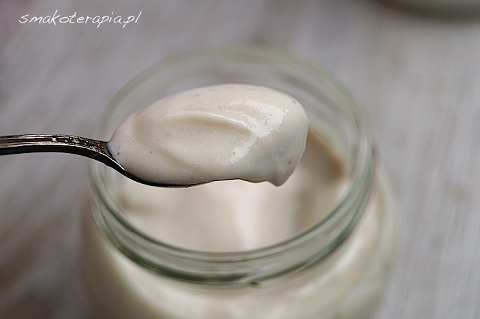 Jak to się dzieje, że ten Twój jogurcik taki biały, a mój wychodzi w kolorze mocno beżowym? I to niezależnie od tego, czy robię z nerkowców czy z migdałów. I tak ślicznie błyszczy, a mój… Hm… jak skwitowała moja mama – wygląda i smakuje jak gęsta gładź szpachlowa. Dziecko pożera zachwycone, więc się bardzo nie czepiam, ale może mógłby wyjść lepszy? To i ja bym zjadła, bo na razie… Cieszę się, że syn wcina 🙂 I strasznie gęsty mi wychodzi, prawie dwie szklanki wody, a wciąż to bardziej serek niż jogurt – więcej wody nie dodam, bo i tak już mi się ledwo w blenderze mieści i muszę podnosić pokrywkę. Pewnie pomoże zmniejszenie ilości kaszy i migdałów, ale zastanawia mnie, czemu mi z tych proporcji robi się taki gęścioch.