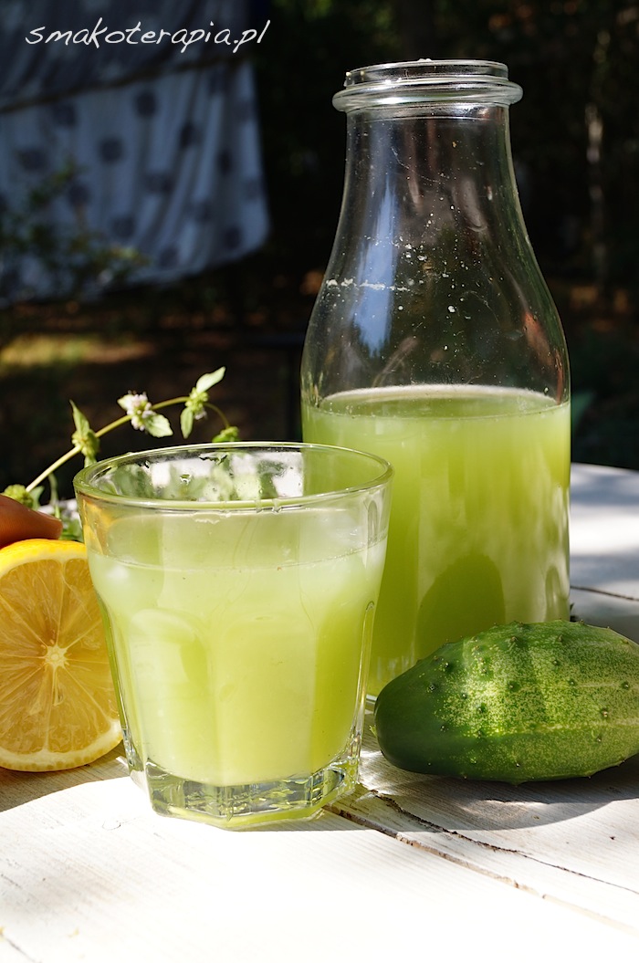 Jeśli dysponujesz wyciskarką slimakową to po prostu wrzuć doń umyte warzywa, miętę, wyciśnij sok, rozcieńcz z wodą w proporcji dowolnej ( u nas około 1:1), dosłódź i podawaj po schłodzeniu lub z lodem (uwaga, wg TMC nie należy zbyt mocno wychładzać organizmu latem).