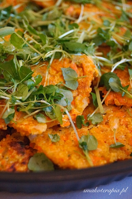 | Moje ukochane wytrawne. Marchewkowo kapustne placki z ciecierzycą a na wierzchu rukiew wodna! |